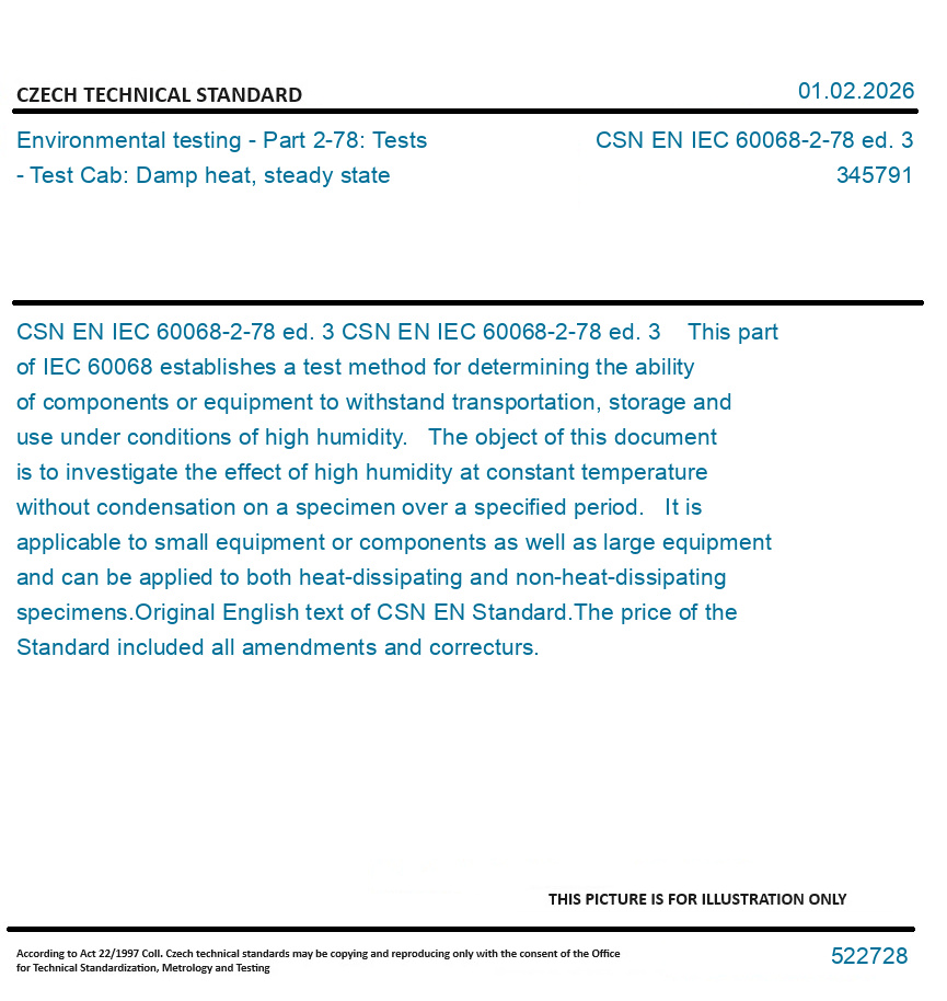 | Number of Standard: | CSN EN IEC 60068-2-78 ed. 3 |
