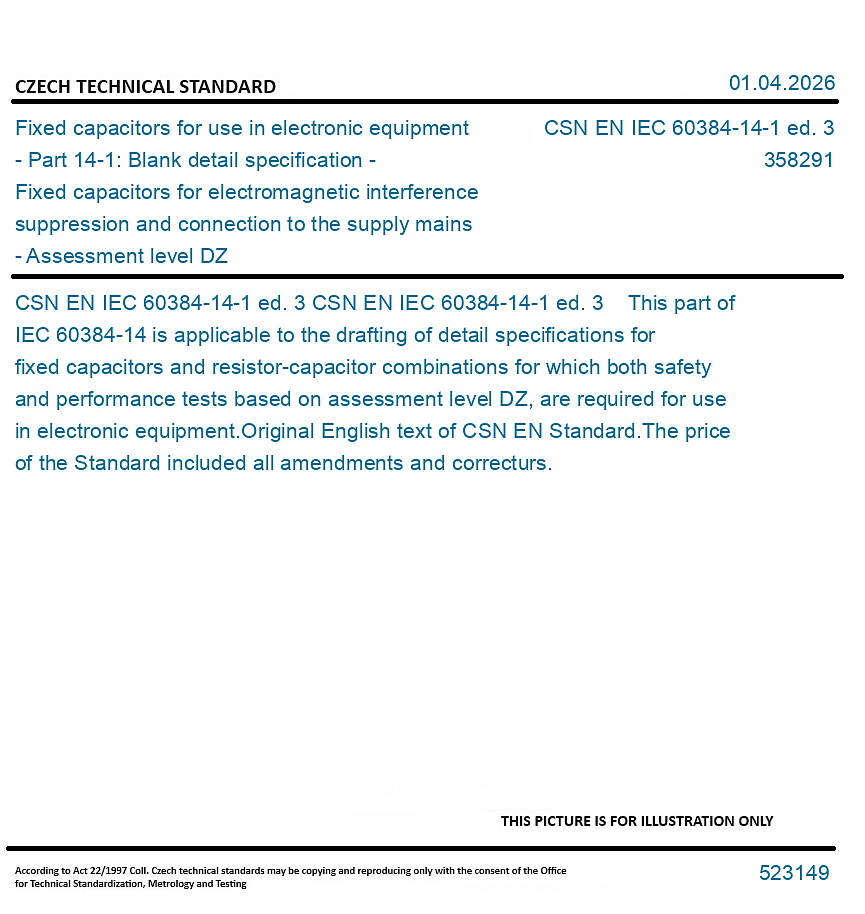 | Number of Standard: | CSN EN IEC 60384-14-1 ed. 3 |