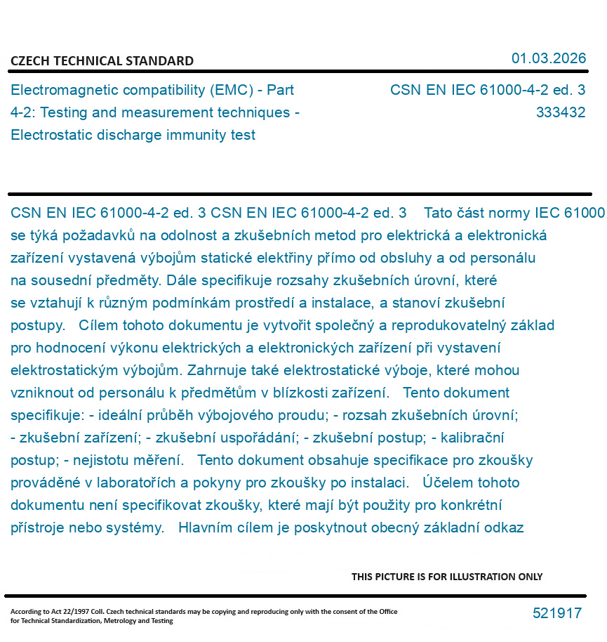 | Number of Standard: | CSN EN IEC 61000-4-2 ed. 3 |