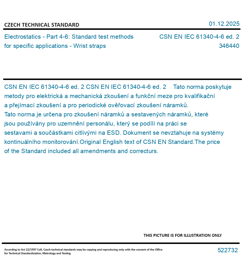 | Number of Standard: | CSN EN IEC 61340-4-6 ed. 2 |