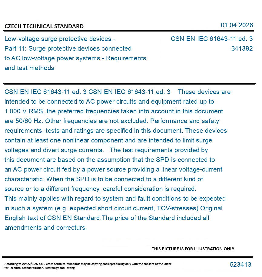 | Number of Standard: | CSN EN IEC 61643-11 ed. 3 |