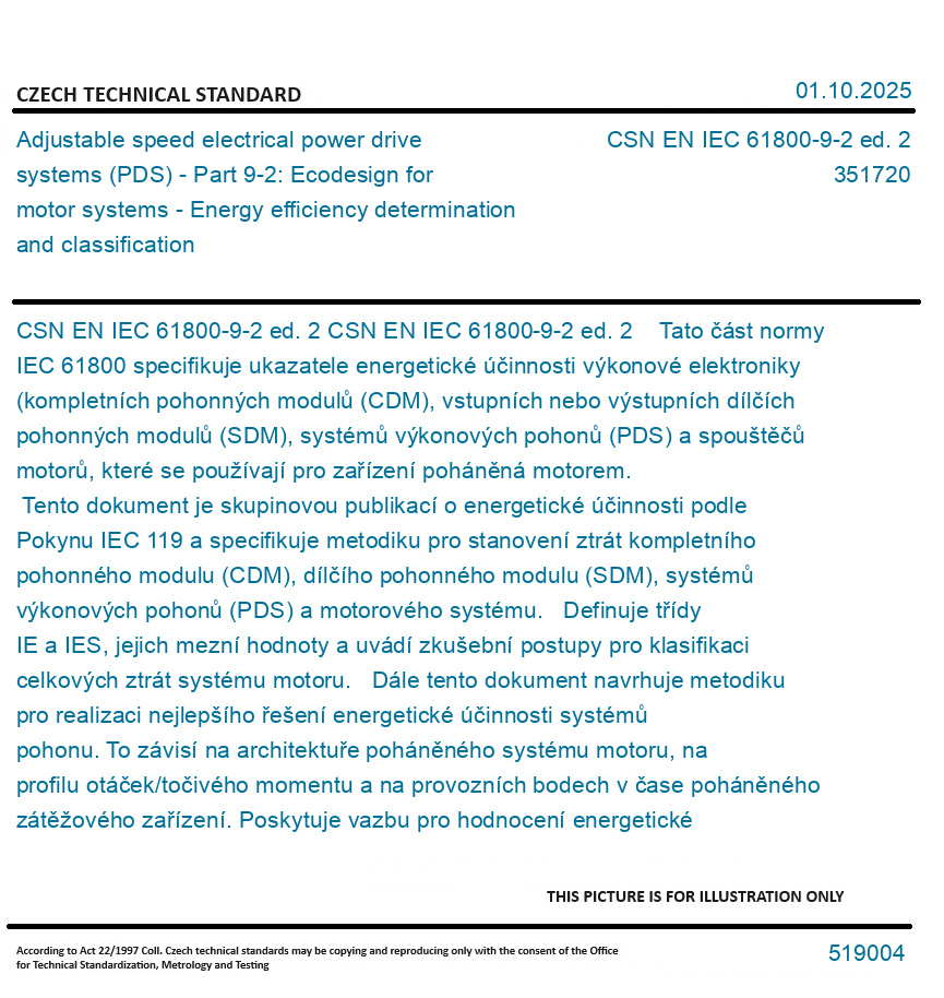 >CSN Standards>35 ELECTRICAL ENGINEERING>3517 Thyristor drives>CSN EN IEC 61800-9-2 ed. 2 - Adjustable speed electrical power drive systems (PDS) - Part 9-2: Ecodesign for motor systems - Energy efficiency determination and classification