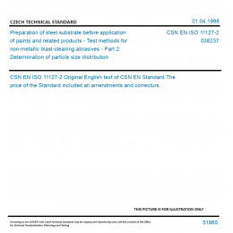 CSN EN ISO 11127-2 Preparation of steel substrate before application of paints and related products - Test methods for non-metallic blast-cleaning abrasives - Part 2: Determination of particle size distribution