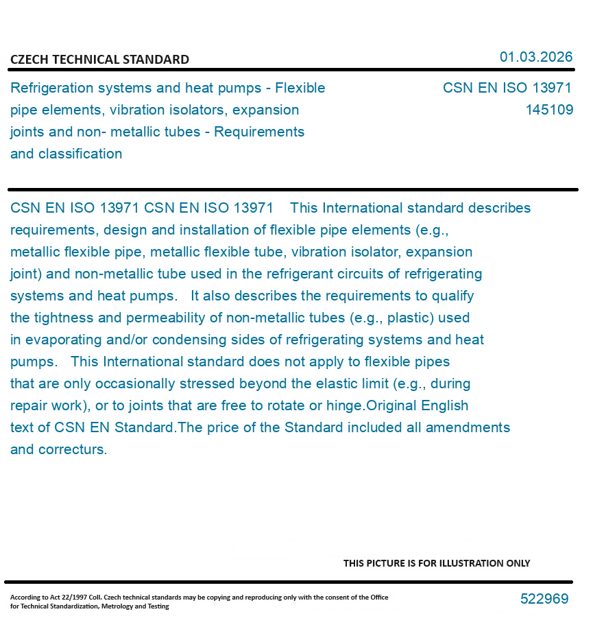 Refrigeration systems and heat pumps - Flexible pipe elements, vibration isolators, expansion joints and non- metallic tubes - Requirements and classification