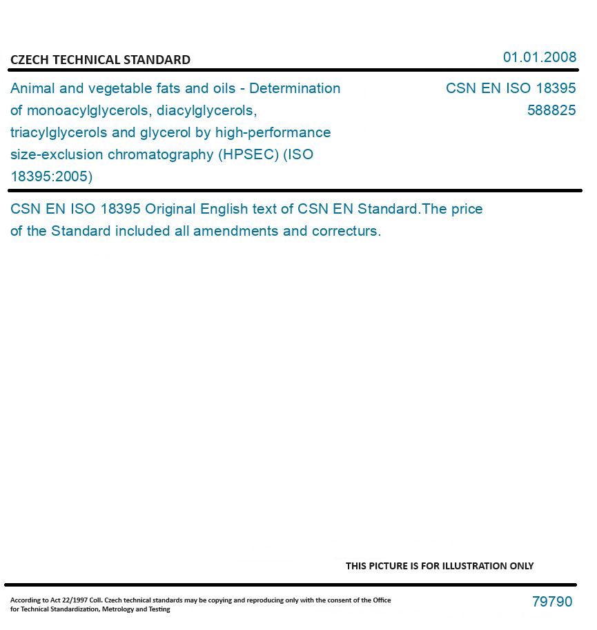 Animal and vegetable fats and oils - Determination of monoacylglycerols, diacylglycerols, triacylglycerols and glycerol by high-performance size-exclusion chromatography (HPSEC) (ISO 18395:2005)