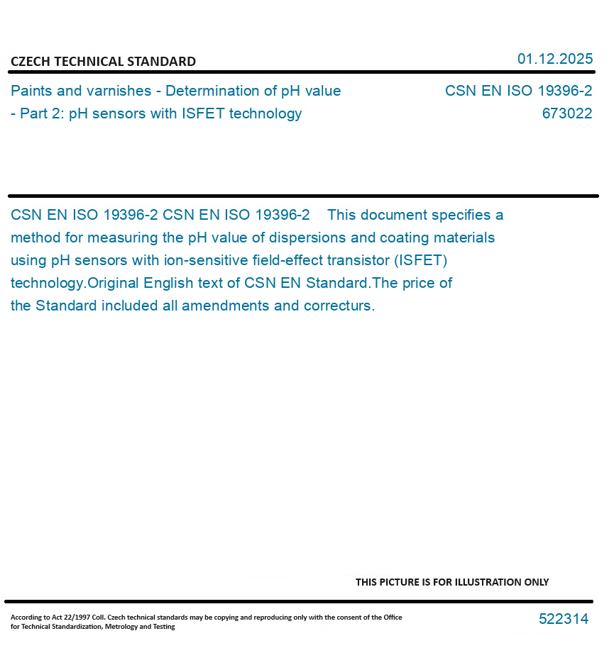 CSN EN ISO 19396-2 This document specifies a method for measuring the pH value of dispersions and coating materials using pH sensors with ion-sensitive field-effect transistor (ISFET) technology. Original English text of CSN EN Standard. The price of the Standard included all amendments and correcturs.
