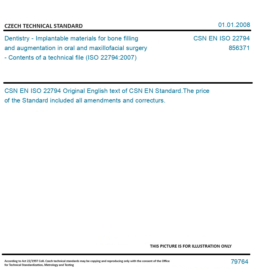 Dentistry - Implantable materials for bone filling and augmentation in oral and maxillofacial surgery - Contents of a technical file (ISO 22794:2007)