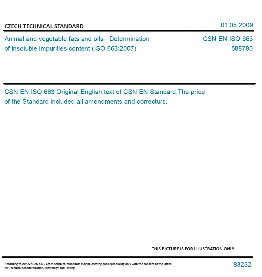Animal and vegetable fats and oils - Determination of insoluble impurities content (ISO 663:2007)