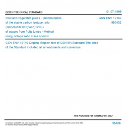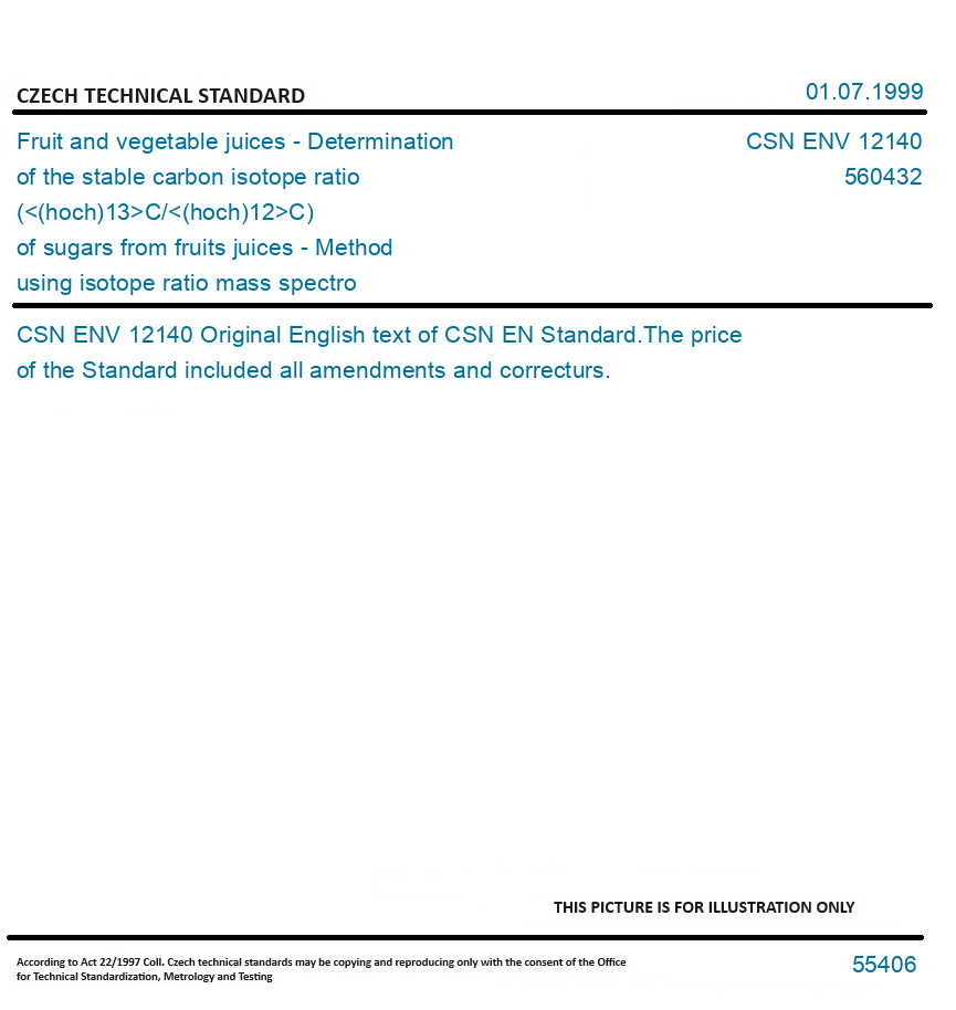 Fruit and vegetable juices - Determination of the stable carbon isotope ratio (<(hoch)13>C/<(hoch)12>C) of sugars from fruits juices - Method using isotope ratio mass spectrometry