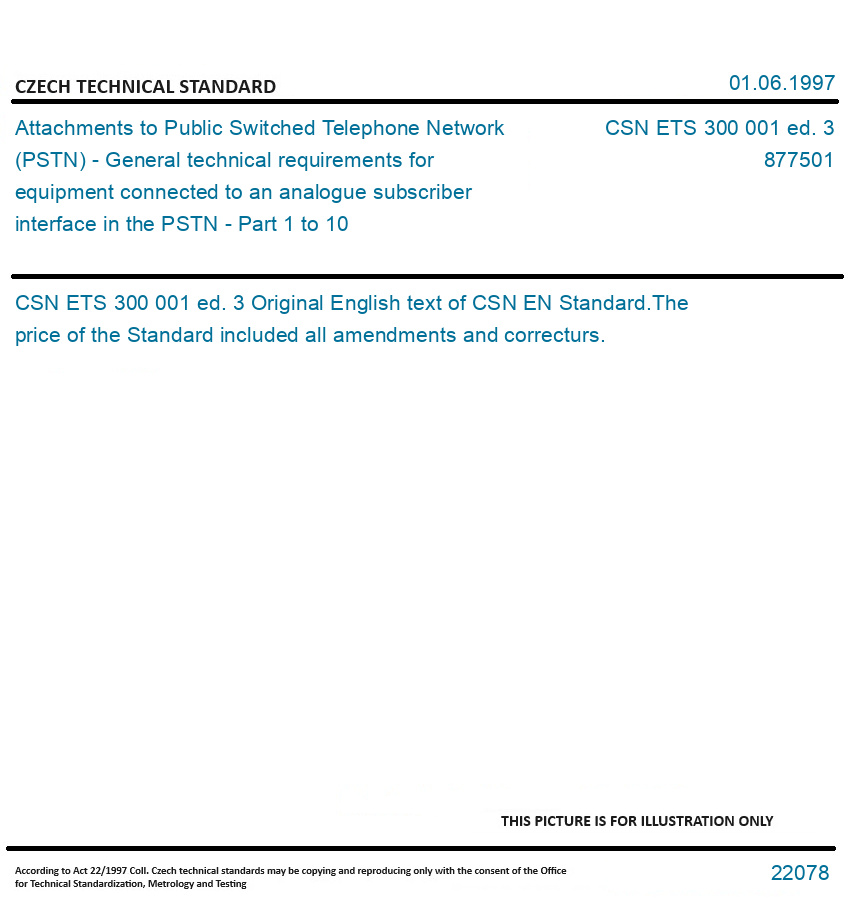 | Number of Standard: | CSN ETS 300 001 ed. 3 |