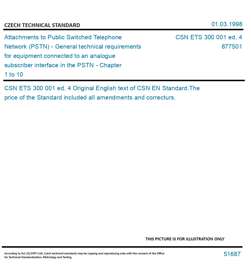 | Number of Standard: | CSN ETS 300 001 ed. 4 |