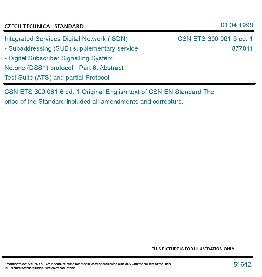 | Number of Standard: | CSN ETS 300 061-6 ed. 1 |