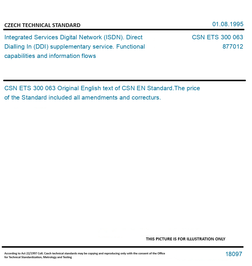 | Number of Standard: | CSN ETS 300 063 |