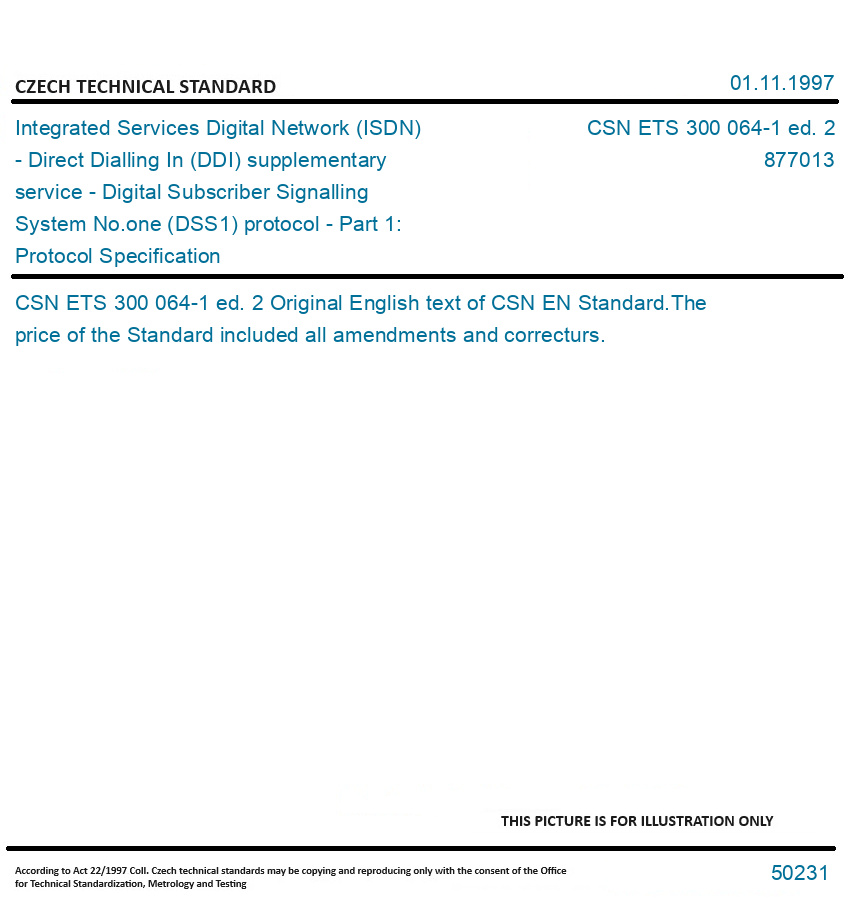 | Number of Standard: | CSN ETS 300 064-1 ed. 2 |