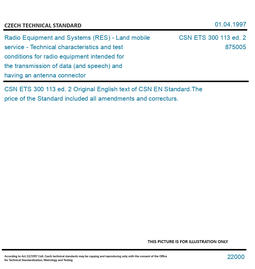 Number of Standard: CSN ETS 300 113 ed. 2 Category: 875005 Pages: 2 Released: 01.04.1997 Catalog number: 22000