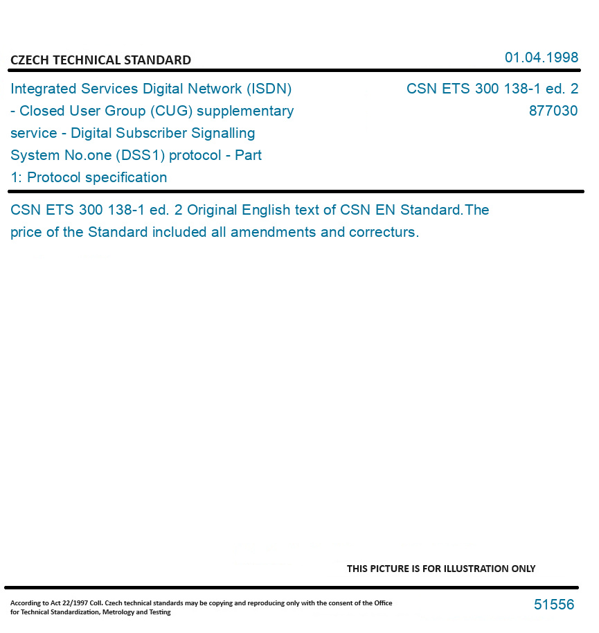 | Number of Standard: | CSN ETS 300 138-1 ed. 2 |