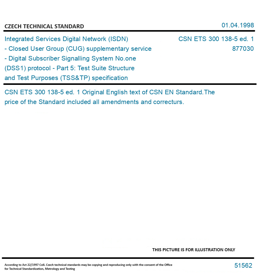 | Number of Standard: | CSN ETS 300 138-5 ed. 1 |