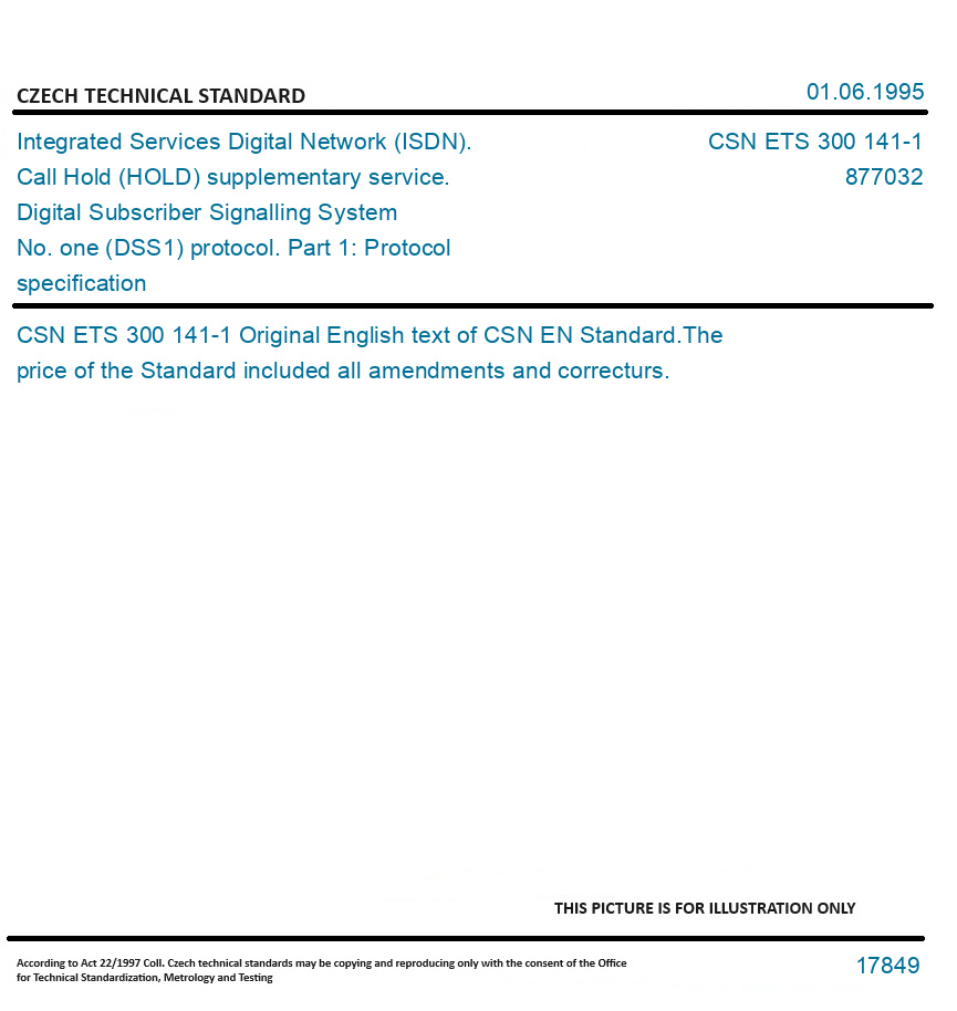 | Number of Standard: | CSN ETS 300 141-1 |