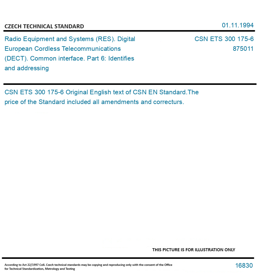 Radio Equipment and Systems (RES). Digital European Cordless Telecommunications (DECT). Common interface. Part 6: Identifies and addressing