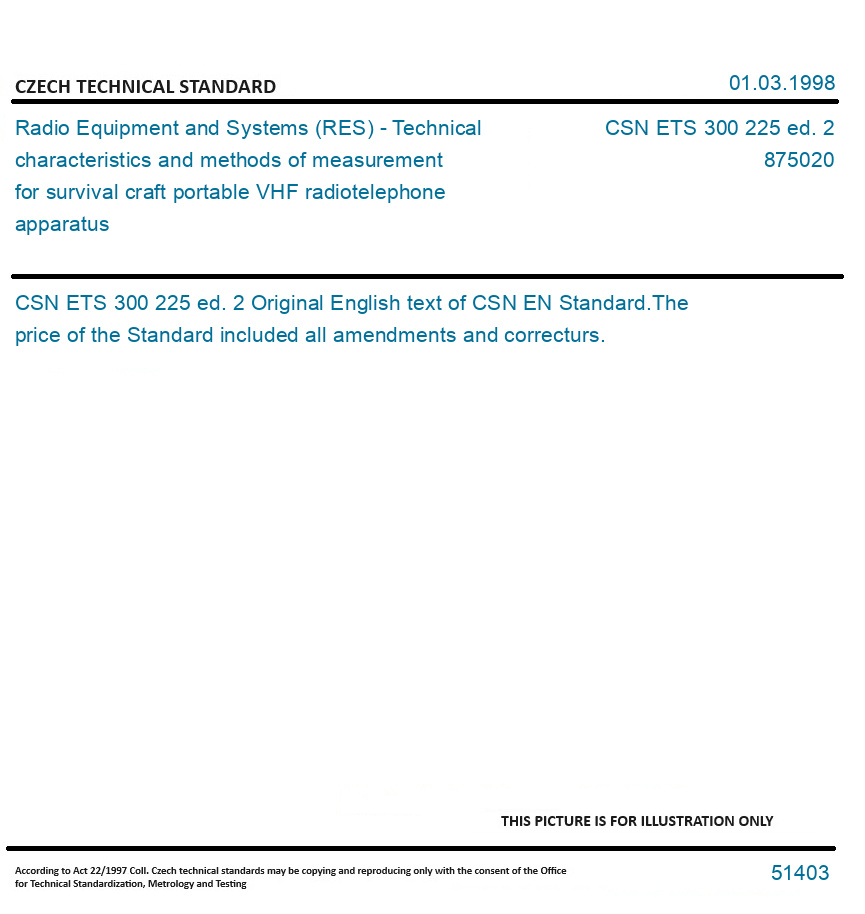 | Number of Standard: | CSN ETS 300 225 ed. 2 |