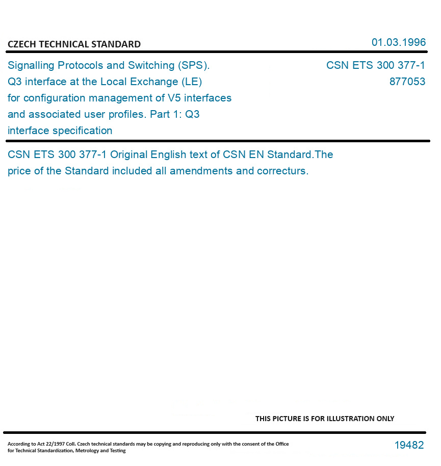 | Number of Standard: | CSN ETS 300 377-1 |