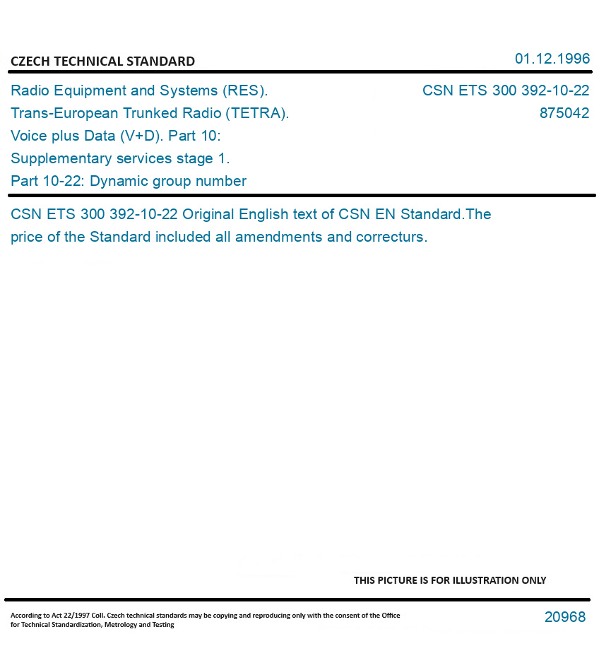 | Number of Standard: | CSN ETS 300 392-10-22 |