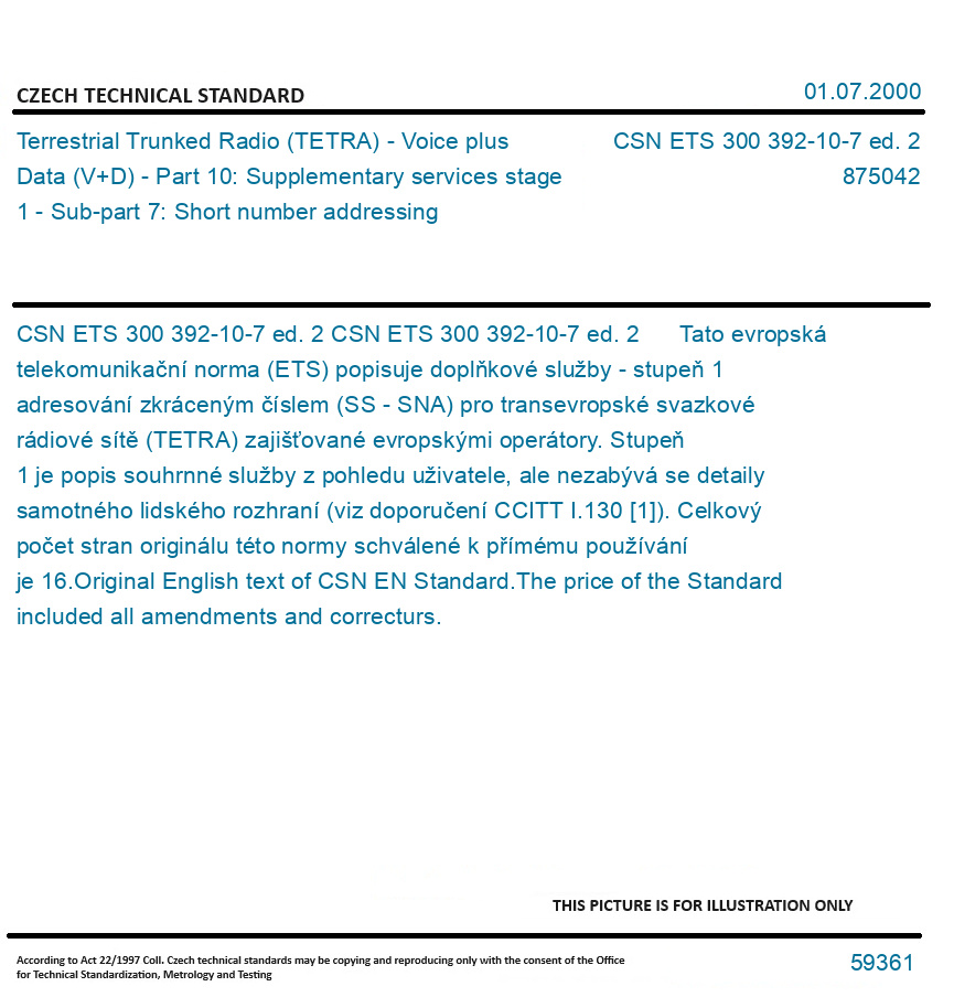 | Number of Standard: | CSN ETS 300 392-10-7 ed. 2 |
