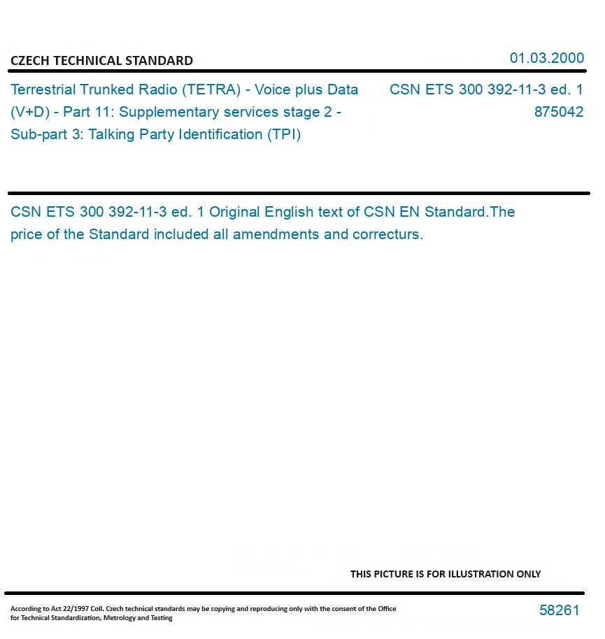 | Number of Standard: | CSN ETS 300 392-11-3 ed. 1 |