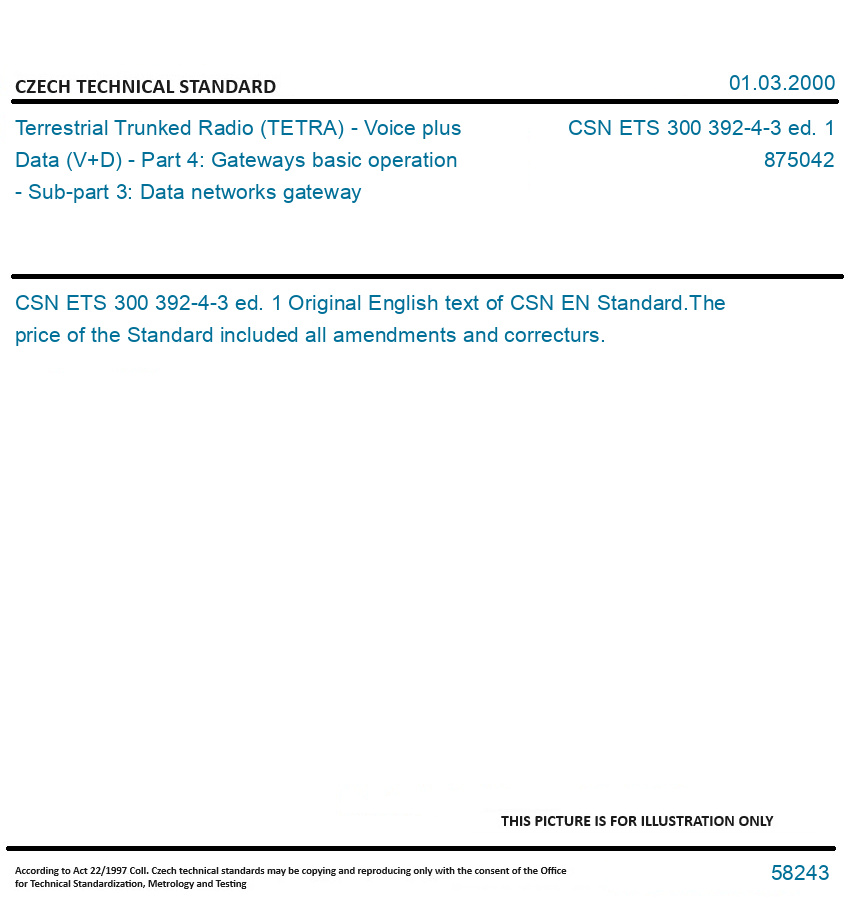 | Number of Standard: | CSN ETS 300 392-4-3 ed. 1 |