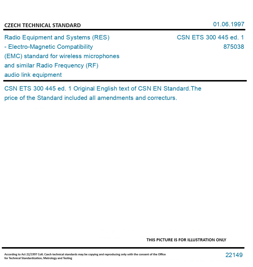 CSN ETS 300 445 ed. 1 Radio Equipment and Systems (RES) - Electro-Magnetic Compatibility (EMC) standard for wireless microphones and similar Radio Frequency (RF) audio link equipment