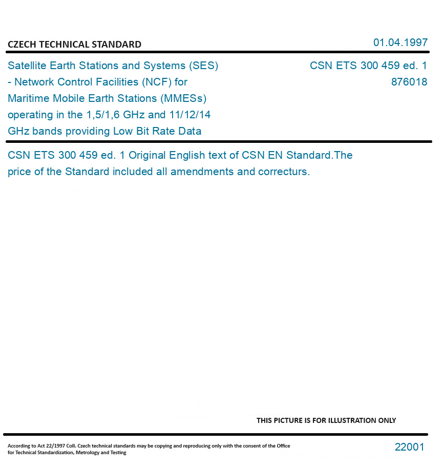 | Number of Standard: | CSN ETS 300 459 ed. 1 |