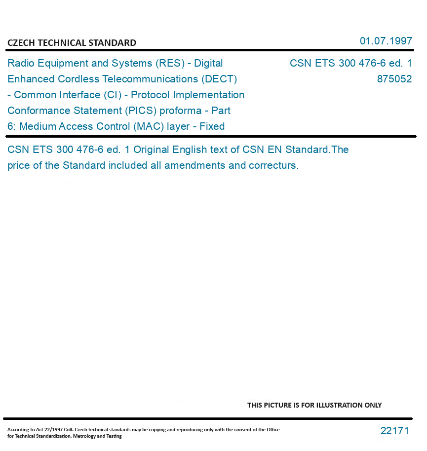 | Number of Standard: | CSN ETS 300 476-6 ed. 1 |