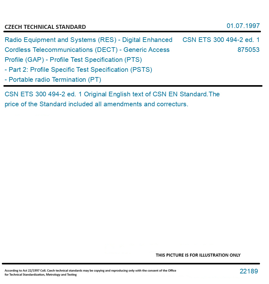 | Number of Standard: | CSN ETS 300 494-2 ed. 1 |