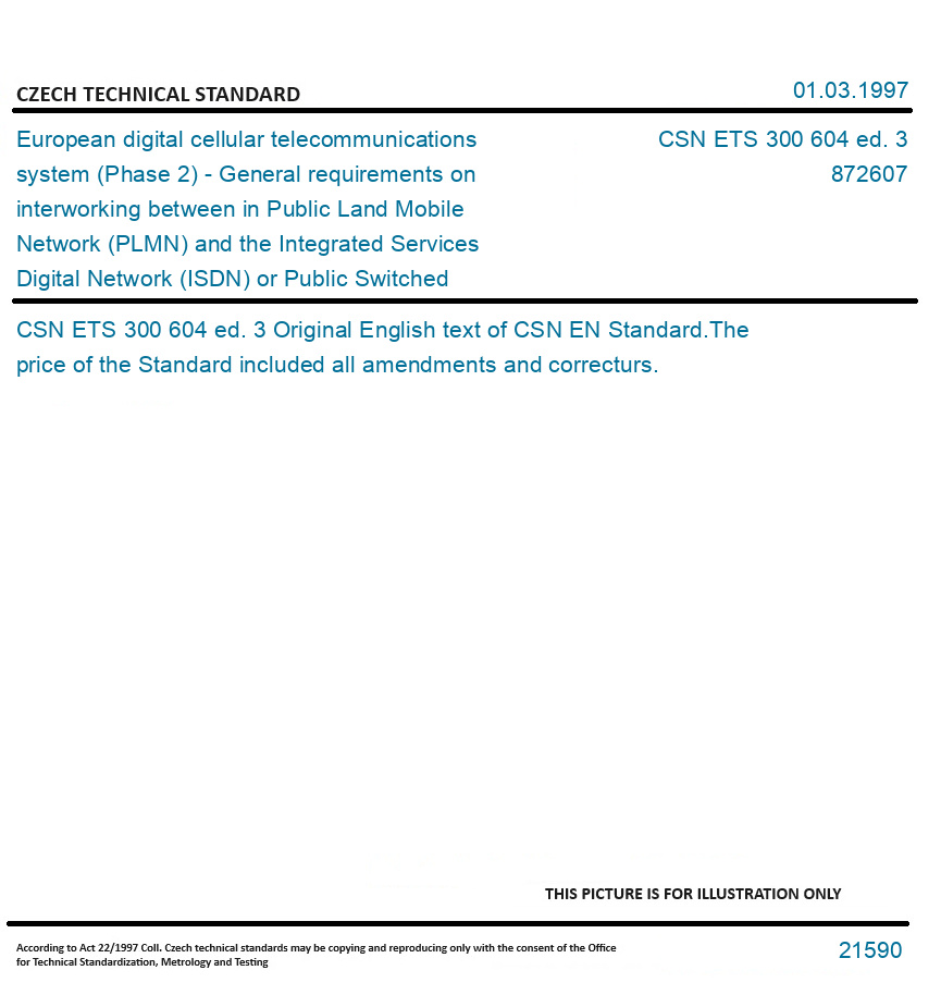 | Number of Standard: | CSN ETS 300 604 ed. 3 |