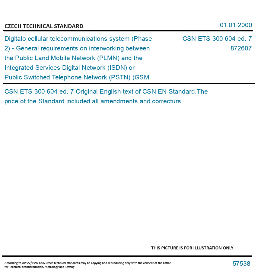 | Number of Standard: | CSN ETS 300 604 ed. 7 |