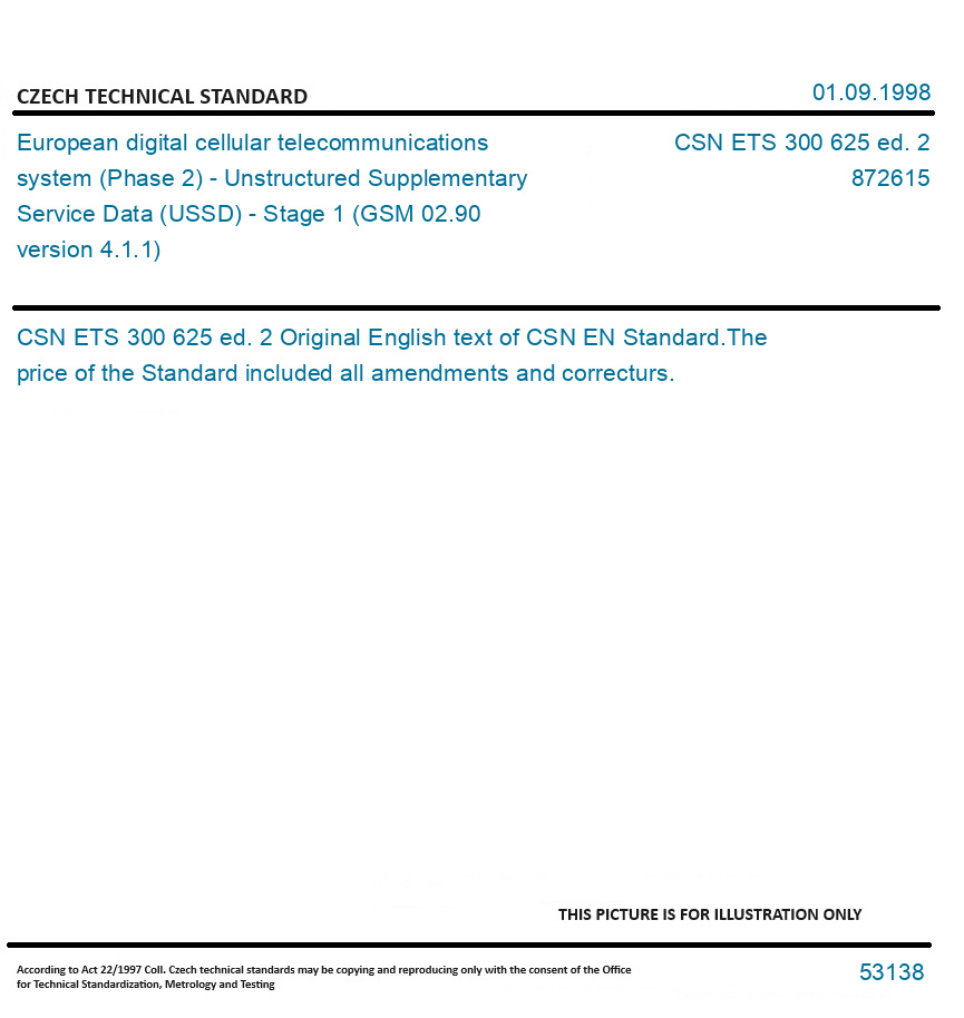 | Number of Standard: | CSN ETS 300 625 ed. 2 |
