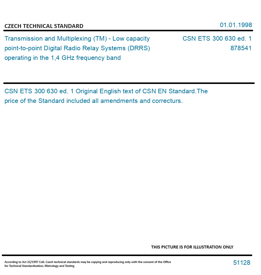 | Number of Standard: | CSN ETS 300 630 ed. 1 |