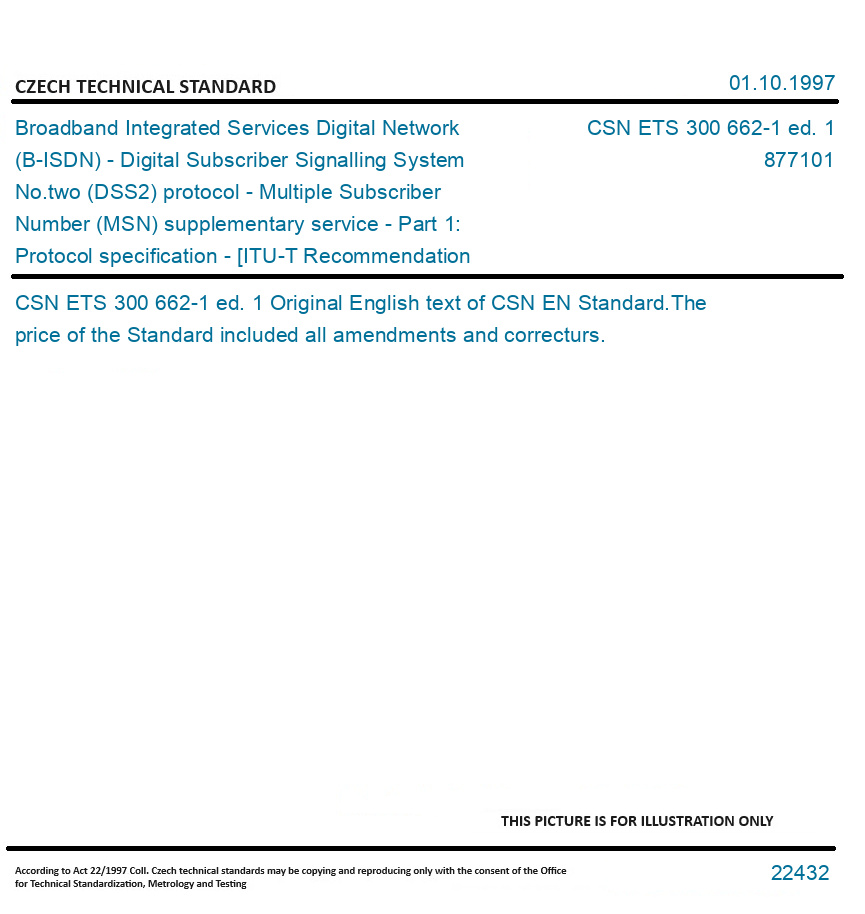 | Number of Standard: | CSN ETS 300 662-1 ed. 1 |