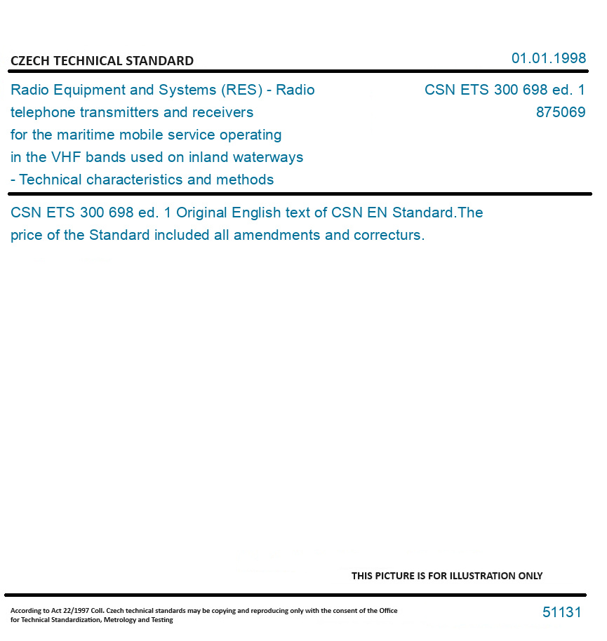 | Number of Standard: | CSN ETS 300 698 ed. 1 |