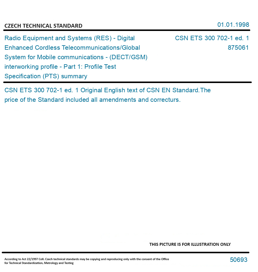 | Number of Standard: | CSN ETS 300 702-1 ed. 1 |