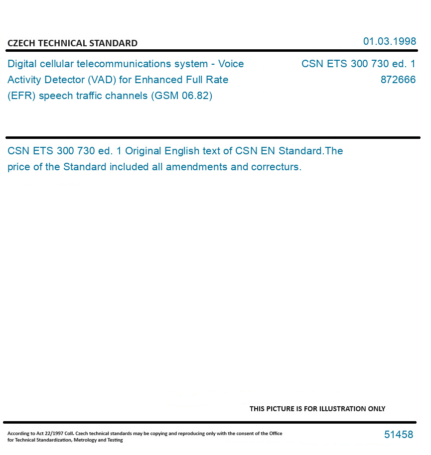 | Number of Standard: | CSN ETS 300 730 ed. 1 |
