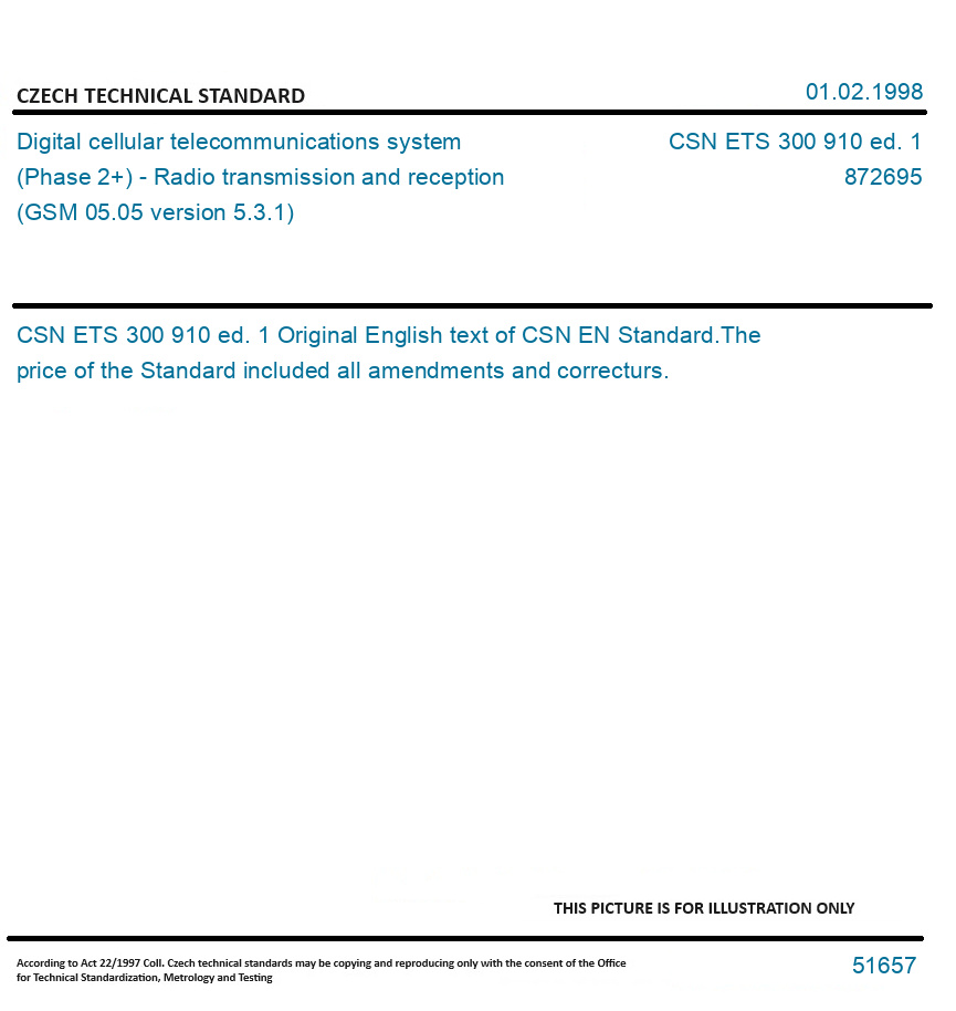 | Number of Standard: | CSN ETS 300 910 ed. 1 |