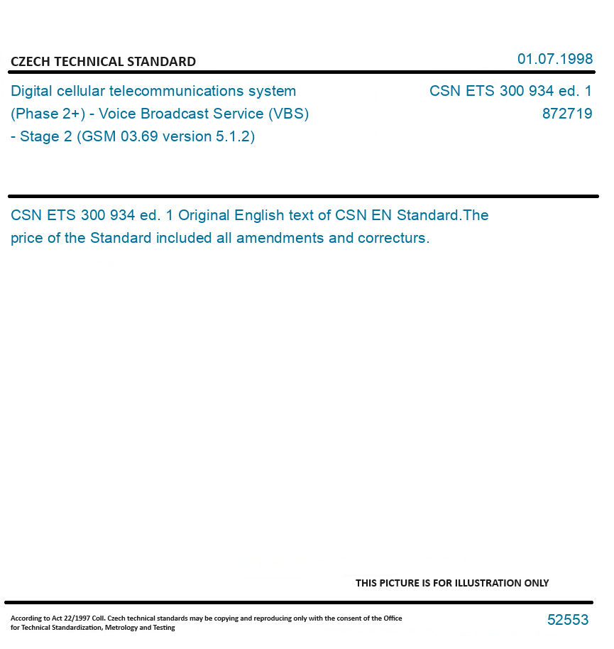 | Number of Standard: | CSN ETS 300 934 ed. 1 |