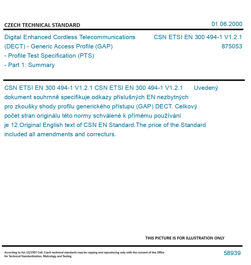 | Number of Standard: | CSN ETSI EN 300 494-1 V1.2.1 |