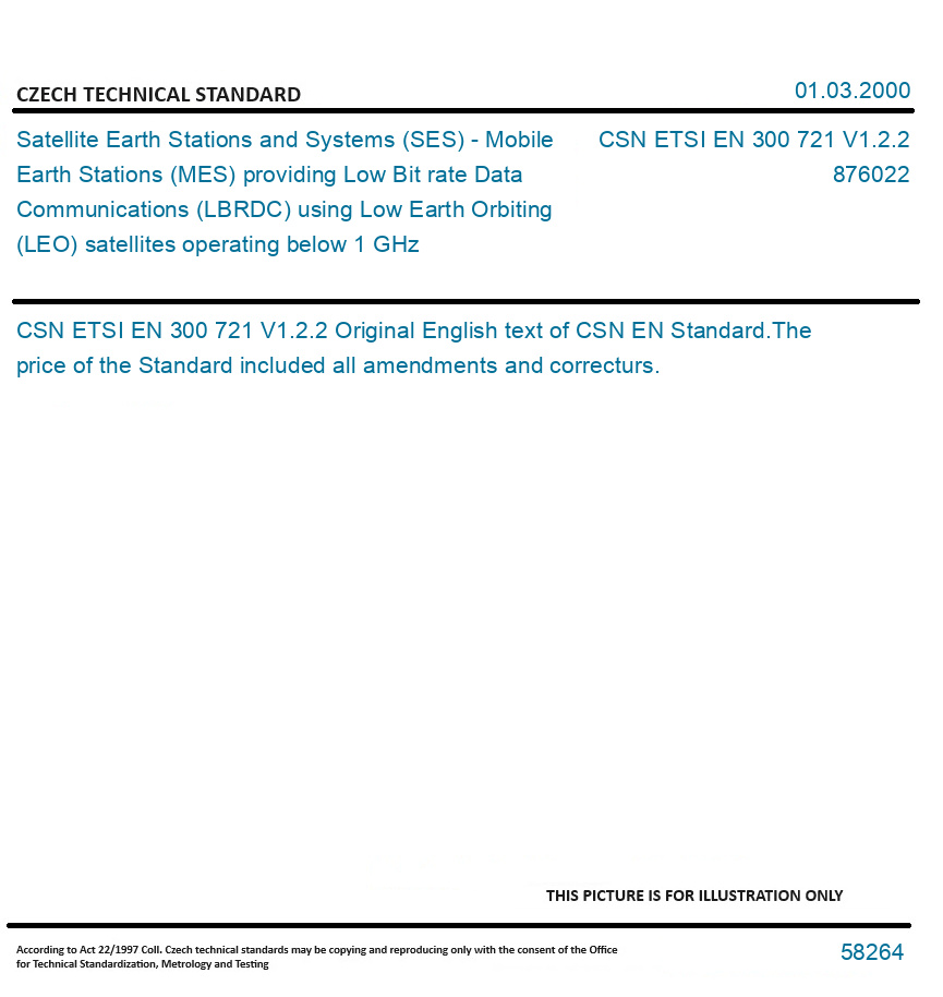 | Number of Standard: | CSN ETSI EN 300 721 V1.2.2 |