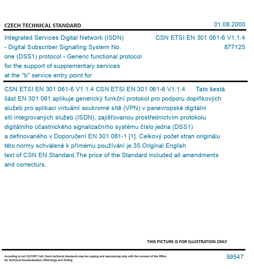 | Number of Standard: | CSN ETSI EN 301 061-6 V1.1.4 |