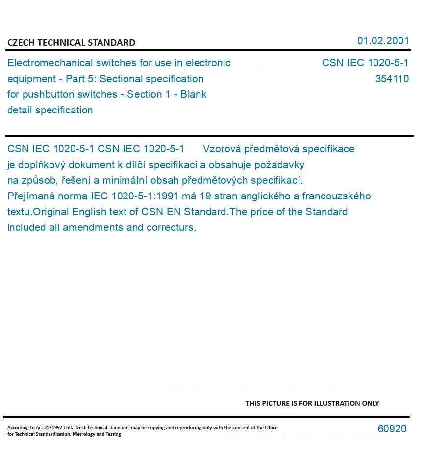 Number of Standard: CSN IEC 1020-5-1 Category: 354110 Pages: 2 Released: 01.02.2001 Catalog number: 60920