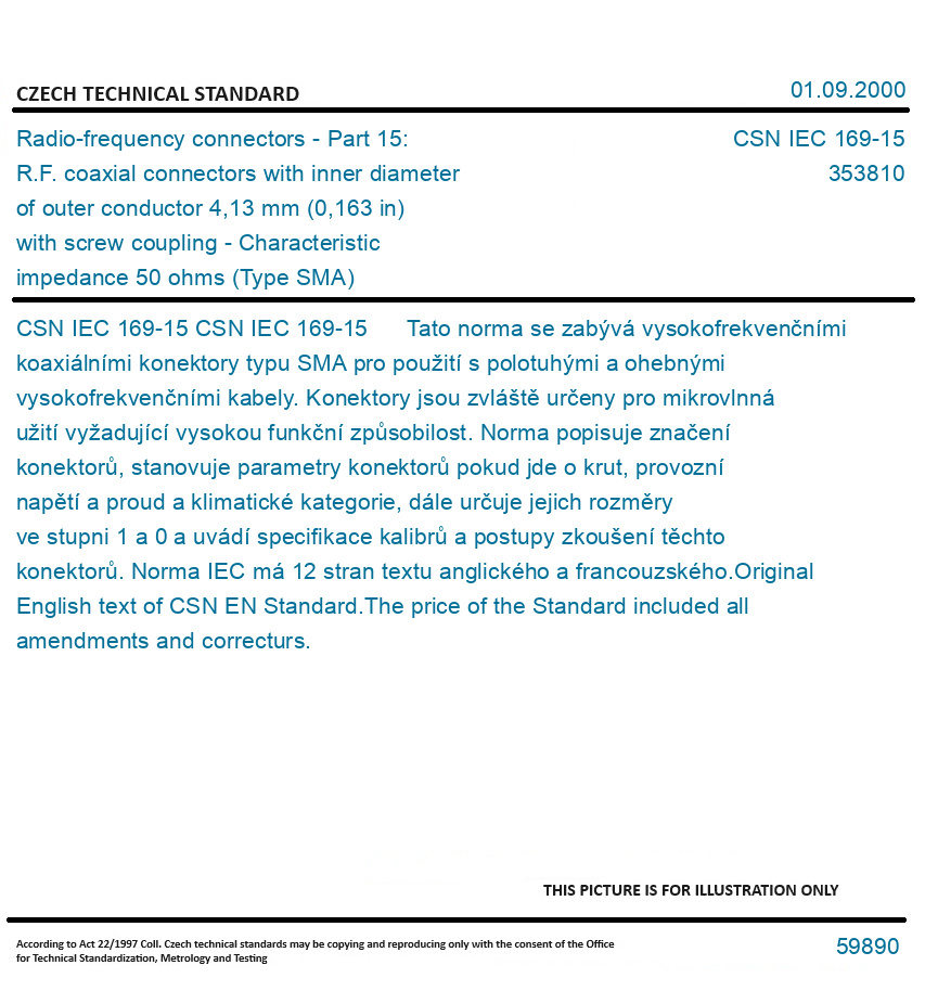 | Number of Standard: | CSN IEC 169-15 |