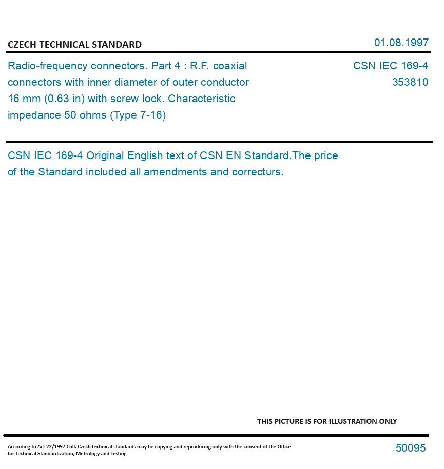 | Number of Standard: | CSN IEC 169-4 |