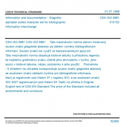 Information and documentation - Glagolitic alphabet coded character set for bibliographic information interchange